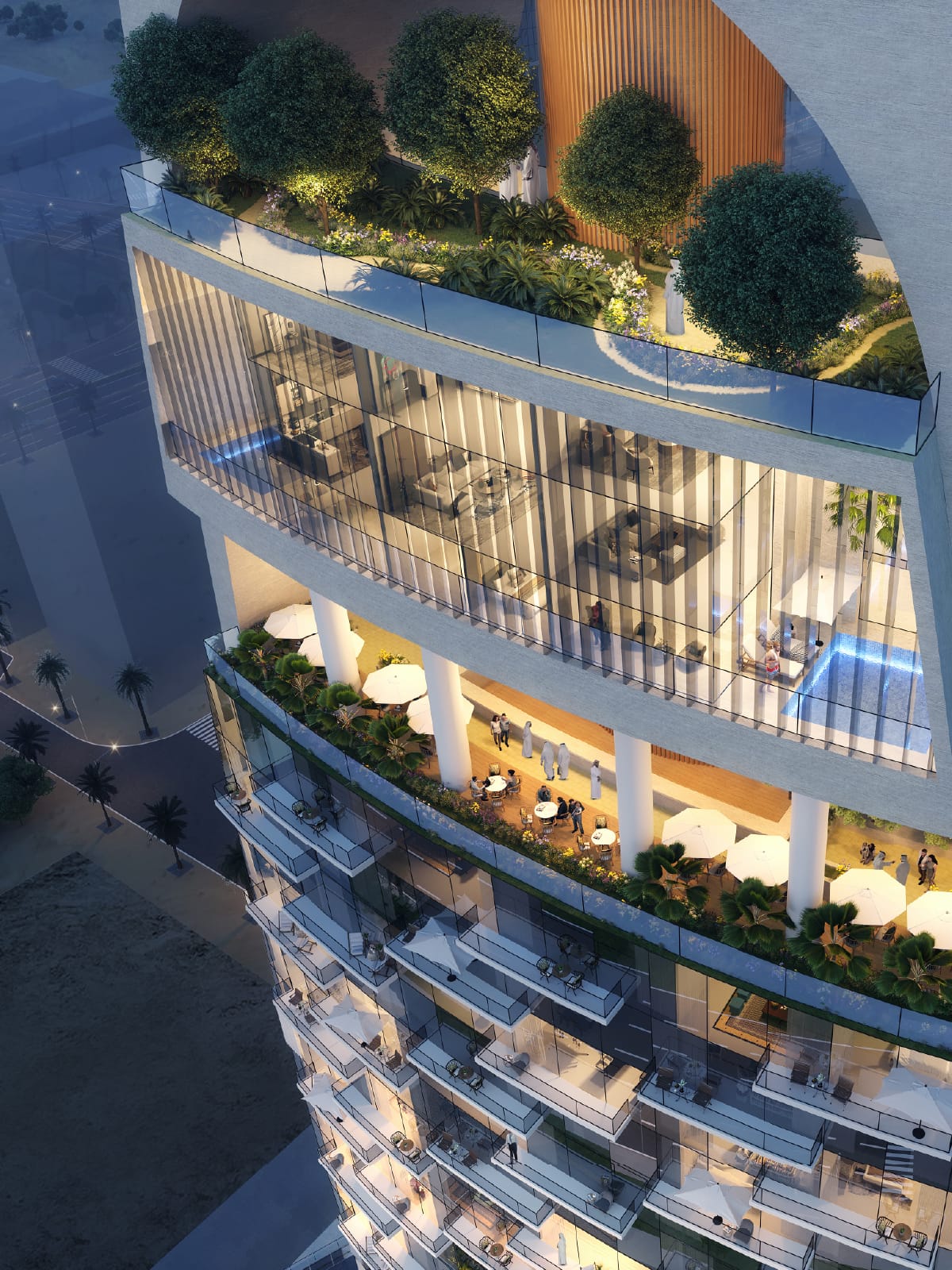 Rising along Kuwait's prestigious Corniche, this striking residential tower redefines coastal luxury with its bold, full-glass façade and floating balconies that maximize panoramic sea views. The podium level features high-end retail boutiques and premium amenities, including a sky lounge, infinity pool, and private beach access. Each meticulously designed apartment blends contemporary elegance with functionality, offering smart-home features and premium finishes. Underground parking and 24/7 concierge service cater to discerning residents. A seamless fusion of architectural innovation and prime location, this tower sets a new standard for waterfront living—where urban sophistication meets the serenity of the Arabian Gulf.