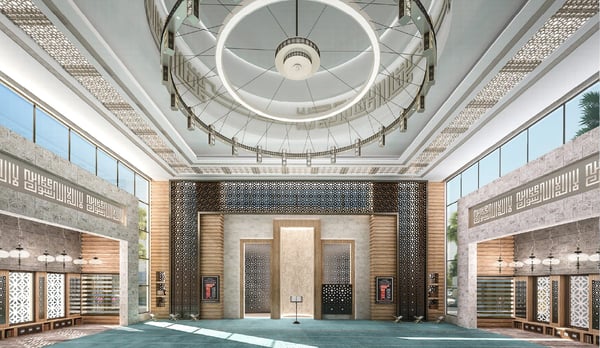 This contemporary-designed mosque serves 700 worshippers, catering primarily to employees of nearby residential buildings and the adjacent Abu Dhabi Islamic Bank (ADIB) Headquarters along Airport Road. Blending sleek aesthetics with functionality, it features separate prayer halls for men and women, ensuring comfort and accessibility. Its minimalist architecture harmonizes with Abu Dhabi's urban landscape while providing a serene spiritual space for daily prayers. Strategically located to serve professionals and residents, the mosque combines modern design with cultural reverence, fostering community and convenience in one of the city's key commercial hubs.